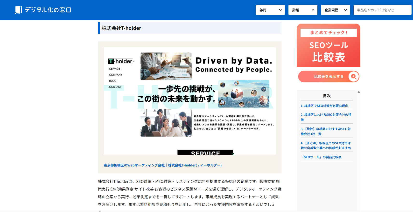 デジタル化の窓口様に「板橋区に特化したSEO対策会社」として掲載いただきました。…